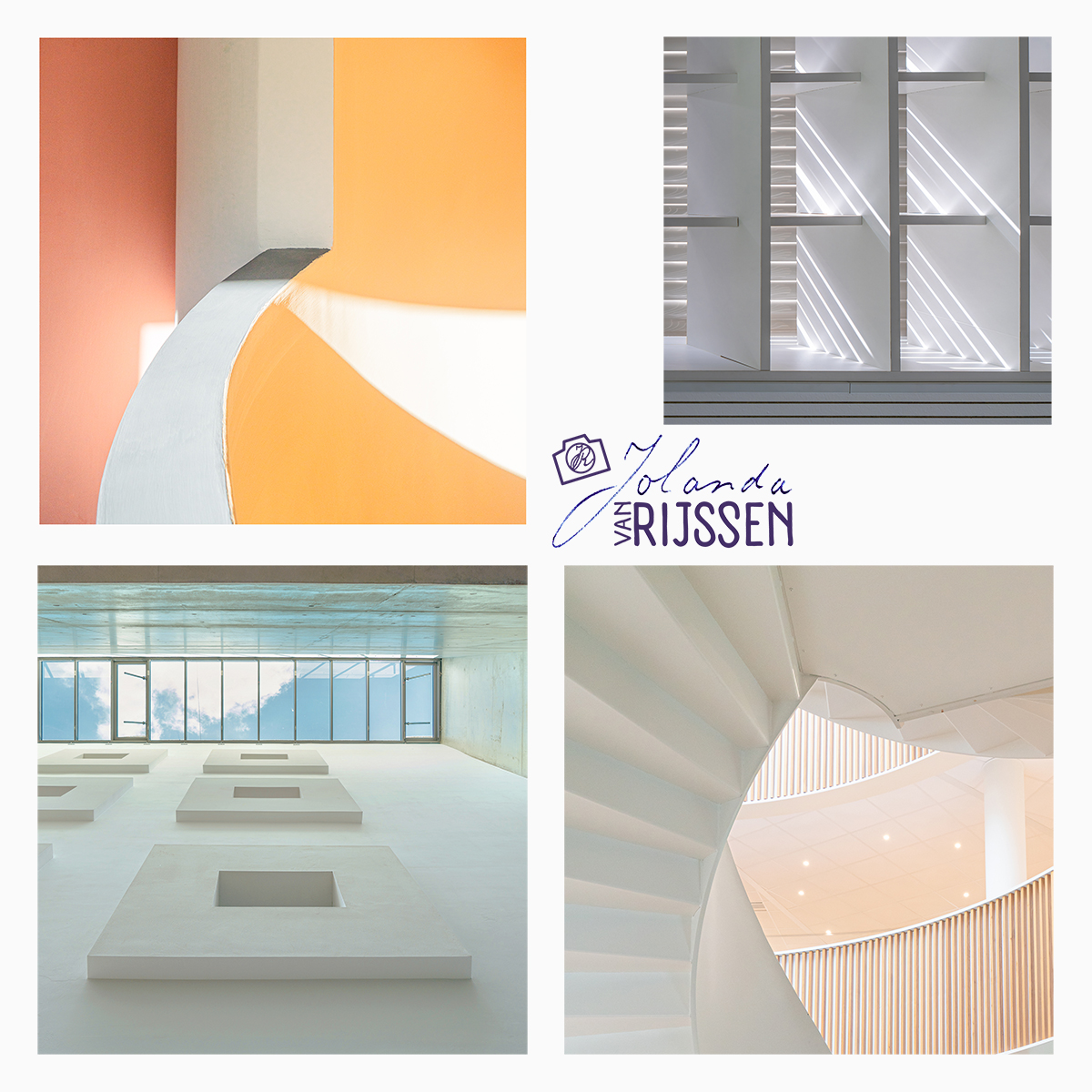 Als fotograaf zoekt Jolanda van Rijssen / Foto van Van Rijssen naar boeiende standpunten en onverwachte invalshoeken die de sfeer van gebouwen of de stedelijke omgeving – of haar gevoel daarbij – weerspiegelen. Zo ontstaat een beeld dat verder gaat dan een registratie en kijkers meetrekt een nieuwe dimensie in. Laat je meevoeren en verwonder je!