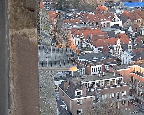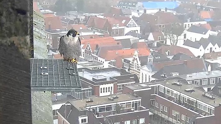Hoewel de valken voornamelijk op de kantoren bij het spoor te vinden zijn, komt vooral Pa af en toe ook even op het rooster zitten.